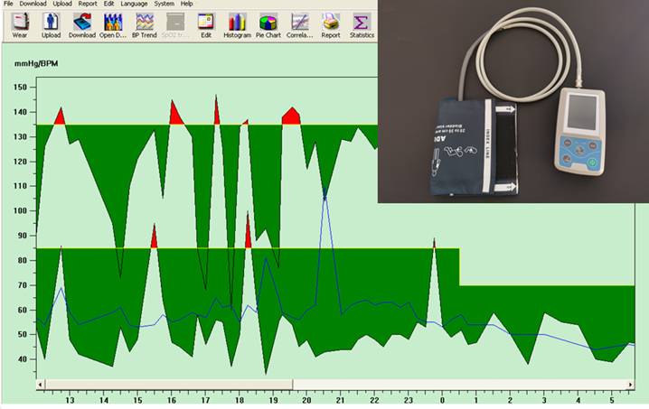 • Διάγνωση της αρτηριακής υπέρτασης: Είναι ιδιαίτερα χρήσιμο για τη διάγνωση της λεγόμενης “υπέρτασης λευκού ιατρείου”, όπου η αρτηριακή πίεση είναι υψηλή μόνο όταν μετράται στο ιατρείο, ενώ μπορεί να είναι φυσιολογική σε άλλες περιόδους της ημέρας.